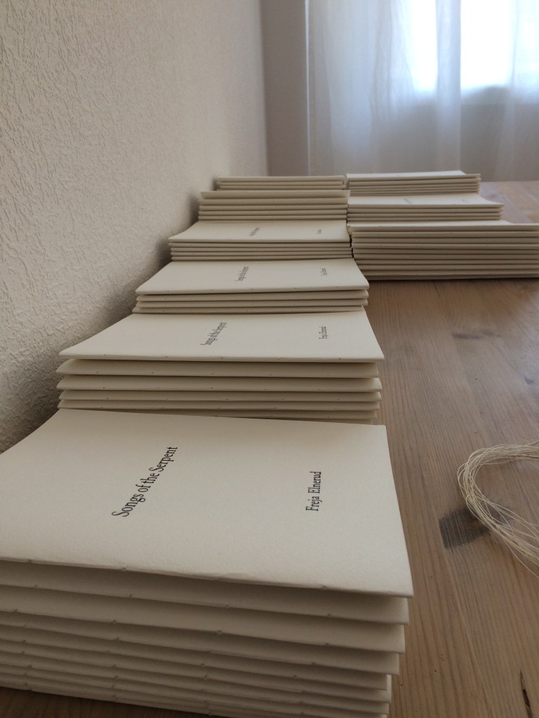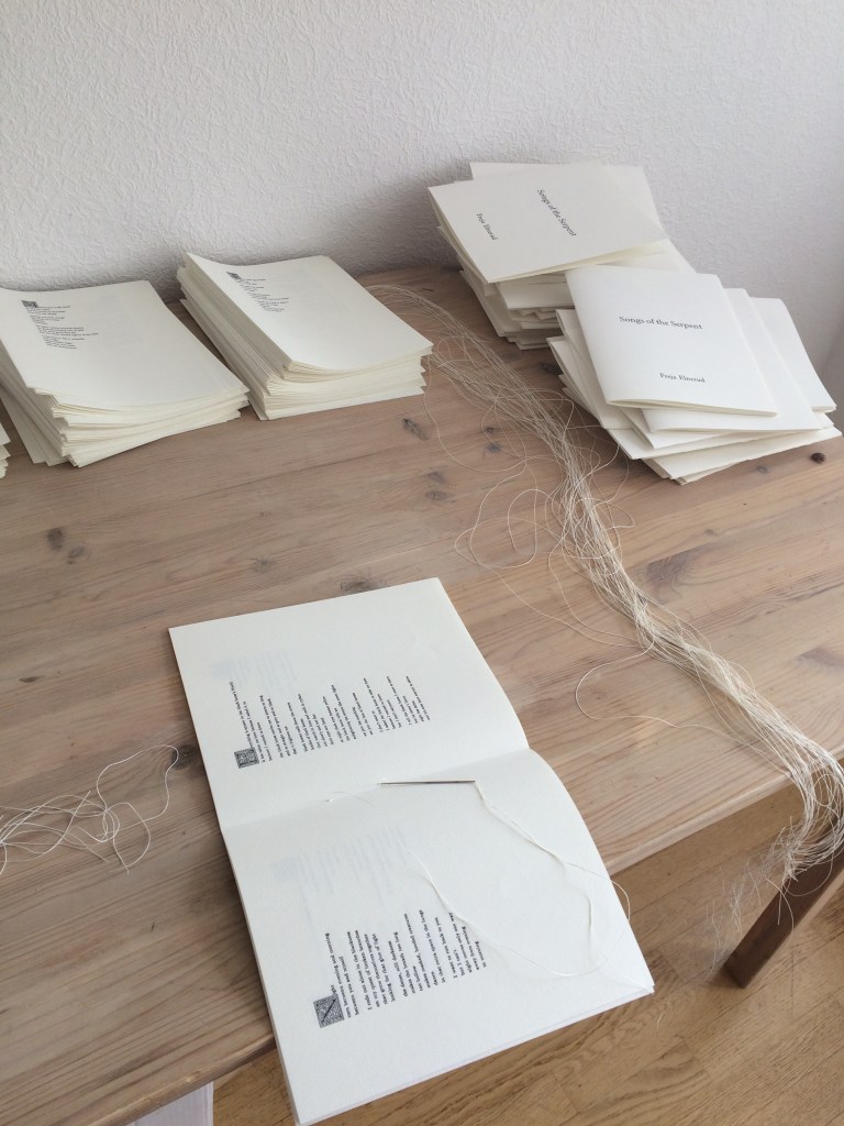 The binding is a simple technique where you use linen thread and a neddle. You pass the needle and thread through the back where the paper is folded.